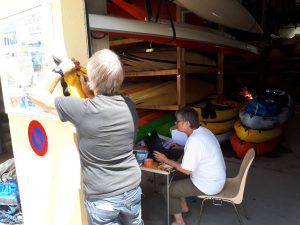 Le matin à la maison de quartier a lieu la présentation officielle du projet sport santé de Pink Ladies baptisé « Roz Alré ». Présenté par Antoine, Florence, Michel et Patrick responsables du projet. Une trentaine de personnes et une salle comble pour ce lancement, avec les élus de la ville d’Auray, la fédération française de canoë kayak, la ligue contre le cancer, le comité départemental et régional de canoe-kayak, la commission sport santé régionale, les Pink ladies de Vannes, Lanester et Lochrist, la presse et les premières femmes intéressées par ce projet.